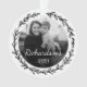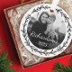 Moderne festliche Schwarz-Weiß-Kranz Familie Foto Ornament Design. Das Design bietet unseren handgezeichnet festlichen, schwarz-weiß-Blatt Kränz Rahmen fügen Ihre eigenen personalisierten Familie Foto, Name und Jahr. Design von Moodthology Papery.