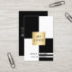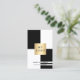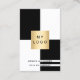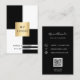Auf der Vorderseite: Schwarz-Weiß-Blöcke. Personalisieren Sie Ihr Firmenlogo, Ihren Namen, Ihren Titel und fügen Sie es hinzu. Zurück: ein schwarzer Hintergrund. Fügen Sie Ihre Kontaktdaten und Ihren eigenen QR-Code zu Ihrer Website oder Ihrem Social-Media-Account hinzu.