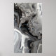 Schwarz-weißes Fluid Abstrakt Grau Silber Poster