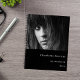 Ein schicker schwarzer Hintergrund. Personalisieren und fügen Sie Ihr eigenes Foto, einen Namen und Text. Weißer Text. Skizzieren Sie das Interieur als Standard, aber Sie können es auch als Notebook ändern.