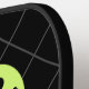 Einzigartiges, niedliches, elegantes und lustiges personalisiertes Pickleball-Paddel mit schwarz-weißem Netzhintergrundmuster und leuchtend neongelbem Pickleball-Ball-Icon-Design mit Ihrem Namen in einem modernen eleganten Kalligraphieskript-Schriftart mit kursiver Handschrift und optionaler Telefonnummer oder Kontaktinformationen in kleinem Text.