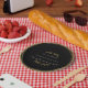 Im Hintergrund glänzt schwarze Textur. Nach klassischen Pantone Farben. Diese Papiertafel kann für jede besondere Veranstaltung wie Hochzeit, Hochzeitstag, Brautparty, Abendessen Party, Verlobung, Geburtstagsparty und vieles mehr personalisiert werden.