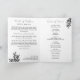 Das Beerdigungsprogramm für das Grünleben in Weiß mit schwarzen Schriftart und Grünpflanzen. Fügen Sie ein Foto, eine Kopie, die Reihenfolge der Dienstleistung, Bestätigungen hinzu.