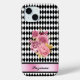 Schwarz-weißes Harlequin mit rosa Blume und Name Case-Mate iPhone Hülle