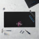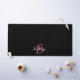 Diese personalisierte Schreibtischmatte verfügt über ein Monogramm und einen Vornamen in modernem, hochrosa und weißem Schrift auf schwarzem Hintergrund.