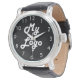 Fügen Sie dieser Uhr Ihr eigenes Firmenlogo hinzu. Schwarzer Hintergrund. Ideal für die Werbung Ihres Unternehmens und Ihrer Marke. Die Zahlen der weißen Uhr.