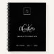 Schwarzer Hintergrund, weißer und grauer Text. Personalisieren und fügen Sie Ihr Firmenlogo, Monogramm-Initialen, Vorname, vollständiger Name und Titel ein. Zurück: Ihr Logo und Platz für Ihre Website-Adresse. Dieses Notebook ist auch in unserem Shop mit Vorlage für Ihren QR-Code, wenn es für Geschenke oder Geschenke.