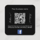 Schwarz-weißes Logo QR Code Facebook folgen uns Quadratische Visitenkarte