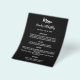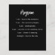 Bitte beachten Sie, dass dieses Menü/Programm auf Flyer gedruckt und sehr dünn ist. Für Menüs/Programme (das gleiche Design) besuchen Sie bitte unseren Shop. Ein klassischer schwarzer Hintergrund. Weißer Text. Front: Personalisieren Sie Ihren Namen, das Datum und das Menü. Zurück: Programm. Wenn Sie ein großes Programm haben, können Sie den Zeilenabstand verringern.