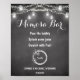 Schwarz-weißes Mimosa Bar Wedding Sign Poster Banner mit String Lights, Mason Jar auf einer Tafel/Tafel Hintergrund für rustikale Scheunenhochzeit, Bauernhochzeit, Landhochzeit. Ändern Sie den Text, indem Sie diese Vorlagenoption personalisieren. Für weitere Änderungen in Textstil und Farbe verwenden Sie die Option Weitere anpassen. Karo unten in unserer Shop Kollektion für weitere Produkte mit diesem Design.