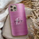 Dieses elegante personalisierte Handy verfügt über ein Monogramm und einen Vornamen in modernem Schwarz-Weiß-Drehbuch auf einem angesagten rosa gebürsteten Metall-Hintergrund.