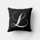 Schwarz-weißes Monogramm L Kissen. Dieser elegante Strudel-Schriftart wandelt Ihre Monogramminitiale in ein elegantes mit Monogramm Designerkissen um. Groß für Ihr Schlafzimmer, Lieblingsstuhl, als Spaßdekor in Ihrem Wohnzimmer oder formaler dekorativer Zusatz zu Ihrem Wohnzimmer. Fertigen Sie mit Ihrer Hintergrundfarbe besonders an. Für andere Buchstaben des Alphabetes treten Sie bitte mit MONOGRAMGALLERY in Verbindung. Elke Clarke©