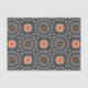 Elegantes Gewebe-Papier-Design mit einem nahtlosen Muster aus geometrischen Formen in weiß und orange auf einem schwarzen Hintergrund.