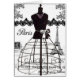 Ein Vintages französisches Damenschneiderinschwarzweiss-mannequin mit Eiffel-Turm und schwarzer Spitze. Ein Vintager Artentwurf auf weißem Hintergrund. Die perfekte einzigartige Geschenkidee für sie bei irgendeiner Gelegenheit.