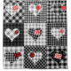 Nahtloses Hintergrundmuster. Wird endlos kacheln. Schwarz-Weiß Patchwork mit Herz und roten Patches. Die Herzen sind mit roten Fliesen verziert, die Dekoration ist mit Lieben gefüllt. Äußern Sie Ihre Zuneigung kreativ. Schwarz-Weiß Patchwork Herzmuster: Liebe, Muster, Hintergrund, Flickwerk, Herz, nahtlos, Illustration, Dekoration, Quilt, Quadrat, Textur, Faden, Naht, Kurve, Quilting, Darning, Wiederholung, Wiederholung, Valentin, Kontinuität