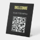 Schwarz-weißes QR Code-Menü mit berührungslosem Sc Sockelschild