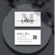 QR Code Monogram Black and White Elegant Visitenkarte. Der Name und der Titel können leicht auf Ihren eigenen geändert werden. Der QR-Code kann für Ihren eigenen Code oder Ihr Logo geändert oder komplett eine benutzerdefinierte Visitenkarte entfernt werden. Teil einer Reihe von Büros stationär von Chessie’s Fine Designs.