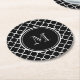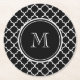 Schwarz-weißes Quatrefoil Muster, Ihr Monogramm Runder Pappuntersetzer