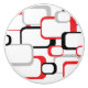Ein lustiges, Vintages inspiriertes Design mit roten, schwarzen und grauen Quadraten auf weißem Hintergrund