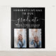 Feiern Sie den Erfolg Ihres Absolventen und werfen Sie ein einfaches Party mit diesem minimalistischen Skript Kalligraphie zwei Foto Abschluss Tapestry Hintergrund in schwarzem Hintergrund, dass Sie hängen oder an Ihrer Wand.