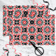 Modernes, lebendiges Gewebepapier mit einem nahtlosen Muster aus geometrischen Formen in Rot, Schwarz, Weiß und Grau.