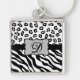 Schwarz-weißes Zebra Leopard-Monogramm Schlüsselanhänger