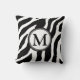 Schwarz-weißes Zebra-Monogramm-dekoratives Kissen