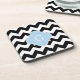Schwarz-weißes Zickzack blaues Quatrefolienmonogra Getränkeuntersetzer