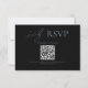 Moderne Liebe verdient eine moderne RSVP-Karte. Diese elegante schwarze Hochzeitskarte weist ein sauberes minimalistisches Layout mit zeitloser blauer Typografie und QR-Code auf. Ideal für zeitgenössische, romantische oder hochkarätige Hochzeitsthemen, das Design verbindet Einfachheit mit emotionaler Wärme. Für Ihre Namen, Datum, Veranstaltungsort und alle Schlüsseldetails individuell einstellbar. Ideal für Paare, die eine gepflegte und stilvolle Ankündigung gewollt haben, die den Ton für einen sinnvollen, unvergesslichen Tag Set. Pair es mit unseren passenden Date Cards, Einladungen, Umschlag Aufkleber und mehr in der kompletten Koordinationssuite speichern.