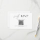 Moderne Liebe verdient eine moderne RSVP-Karte. Diese elegante Hochzeitskarte bietet ein sauberes minimalistisches Layout mit zeitloser schwarzer Typografie und QR-Code. Ideal für zeitgenössische, romantische oder hochkarätige Hochzeitsthemen, das Design verbindet Einfachheit mit emotionaler Wärme. Für Ihre Namen, Datum, Veranstaltungsort und alle Schlüsseldetails individuell einstellbar. Ideal für Paare, die eine gepflegte und stilvolle Ankündigung gewollt haben, die den Ton für einen sinnvollen, unvergesslichen Tag Set. Pair es mit unseren passenden Date Cards, Einladungen, Umschlag Aufkleber und mehr in der kompletten Koordinationssuite speichern.