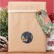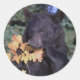 Geschenke aus einem Foto eines schwarzen Bären spielen mit einem Ahornzweig Blätter in brillanten Herbstfarben.