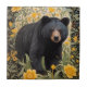 Schwarzbär und gelbe Butterbecher-Blume Fliese