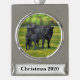 Schwarze Anguskühe und Niedliches Kalb im Sommerwe Banner-Ornament Silber