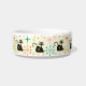 Das ist ein niedliches, schwarzes, atomares Katzenmuster mit Retro-Sternexplosionen aus der Mitte des Jahrhunderts in Rosa, Orange und aquamarin auf hellcremefarbenem Hintergrund. Es ist toll, nach einer Schüssel für deine Katze zu suchen