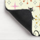 Das ist ein niedliches, schwarzes, atomares Katzenmuster mit einem Retro-Sternexplosionen-Muster aus der Mitte des Jahrhunderts in Rosa, Orange und aquamarin auf hellcremefarbenem Hintergrund. Es ist großartig aussehende Maus-Pad für jeden, der Katzen Liebe und Retro-Designs erstellt