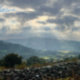 Brecon Beacons - Banana Brycheiniog Nationalpark. Schwarze Berge in Südwales. Landschaft der walisischen Landschaft. Das Foto zeigt wunderbare Lichtwellen aus einem dramatischen Himmel.
