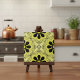 Elegantes Keramik-Fliesen-Design mit einem nahtlosen Muster aus stilisierten geometrischen Blume und geometrischen Formen in schwarz auf einem limig grünen Hintergrund.