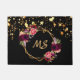 Ein schicker schwarzer Hintergrund mit tropfenden Imitaten goldenen Sternen. Die Einrichtung besteht aus einem geometrischen Rahmen in den Imitaten mit goldenem Rahmen und bordeauxroten, rosa und goldfarbenen Blume mit Blumenmotiven. Personalisieren und fügen Sie Ihre Monogrammbuchstaben, -initialen. Goldene Buchstaben.