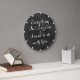 Eine schwarze Tafel rund um die Uhr mit Sternchen für Zahlen und ein wunderschönes Sprichwort für die Liebe. Diese Uhr ist ein perfektes Geschenk für jeden. Verwenden Sie das Zitat, das auf der Uhr ist, oder erstellen Sie Ihre eigene, da das Sprichwort der Uhr vollständig anpassbar ist.
