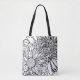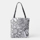 Diese Tasche zeigt eine übergroße Linienzeichnung von Chrysanthemen in Schwarz mit einem personalisierten Namen. Originalkunst von Dogwood & Thistle.