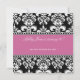 Schwarzweiss-Damast-kundengerechte elegante Geburtstags-Einladungen. Fertigen Sie mit Ihren Informationen unter Verwendung der Aufforderungen besonders an ODER ändern Sie die Farbe des Bandes und fügen Sie mehr Text, indem Sie "vorwählen, besonders anfertigen ihn" Wahl und Anwendung der redigierenmenüs hinzu. Luxuriöses Damastmuster und -entwurf für Ihre speziellen Geburtstagseinladungen