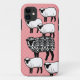 Selbst ein schwarzes Schaf, das Symbol der Nichteinhaltung, sieht ganz normal aus, wenn man es mit einem schwarzen Damast-Schaf vergleicht! Lass deine Telefonabdeckung elegant anders zu gestalten, mit dieser Abbildung mit normalen weißen Schafen und einem ausgefallenen schwarzen Damast-Schaf auf einem rosa Diamant-gemusterten Hintergrund