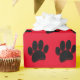 Cartoon Hundepuildprint in schwarz mit rotem Hintergrund. Imitate 3D-Effekt auf das Bild angewendet. Individuelle Geschenkpapier-Rollen für Zuhause und Unternehmen wie Heimtierläden. Geschenkpackidee für Hundefreunde und ihre Hunde.
