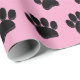 Cartoon Hund Pwprint in schwarz mit hellrosa Hintergrund. Imitate 3D-Effekt auf das Bild angewendet. Individuelle Geschenkpapier-Rollen für Zuhause und Unternehmen wie Heimtierläden. Geschenkpackidee für Hundefreunde und ihre Hunde.