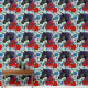 Schwarzes Einhorn mit lila und roten Blume vor dem Hintergrund von Salbei grün