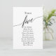 Schwarze, elegante Script-Tischnummer 5 Seating Ch Einladung