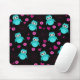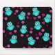 Schwarze Eulenmusterrosa-Herz-Blumen Mousepad