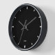Schwarze Farbuhr mit weißen Stundenzahlen, um dem schwarzen Rahmen zu entsprechen. Optionaler Name Einfache minimalistische Gestaltung.