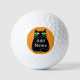 Schwarze, fette Cartoon Katze mit grünen Augen. Niedlicher Katzencharakter Eigene Golfbälle. Text bearbeiten, um ihn anzupassen. Geschenkidee für Katzenliebhaber.