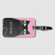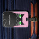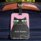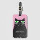 Schwarze, fette Cartoon Katze mit grünen Augen. Niedlicher Katzencharakter Benutzerdefinierte Gepäckanhänger mit alter Druckwirkung auf das Bild. Rosa Hintergrund. Ändern des Namens, um ihn anzupassen. Geschenkidee für Katzenliebhaber.
